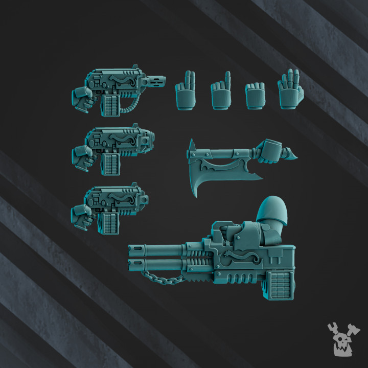 Mit dem Scylla Legion Destroyers squad build-kit können 3 Miniaturen gebaut werden. Das Set enthält: