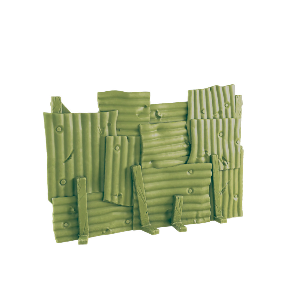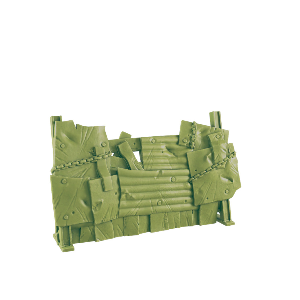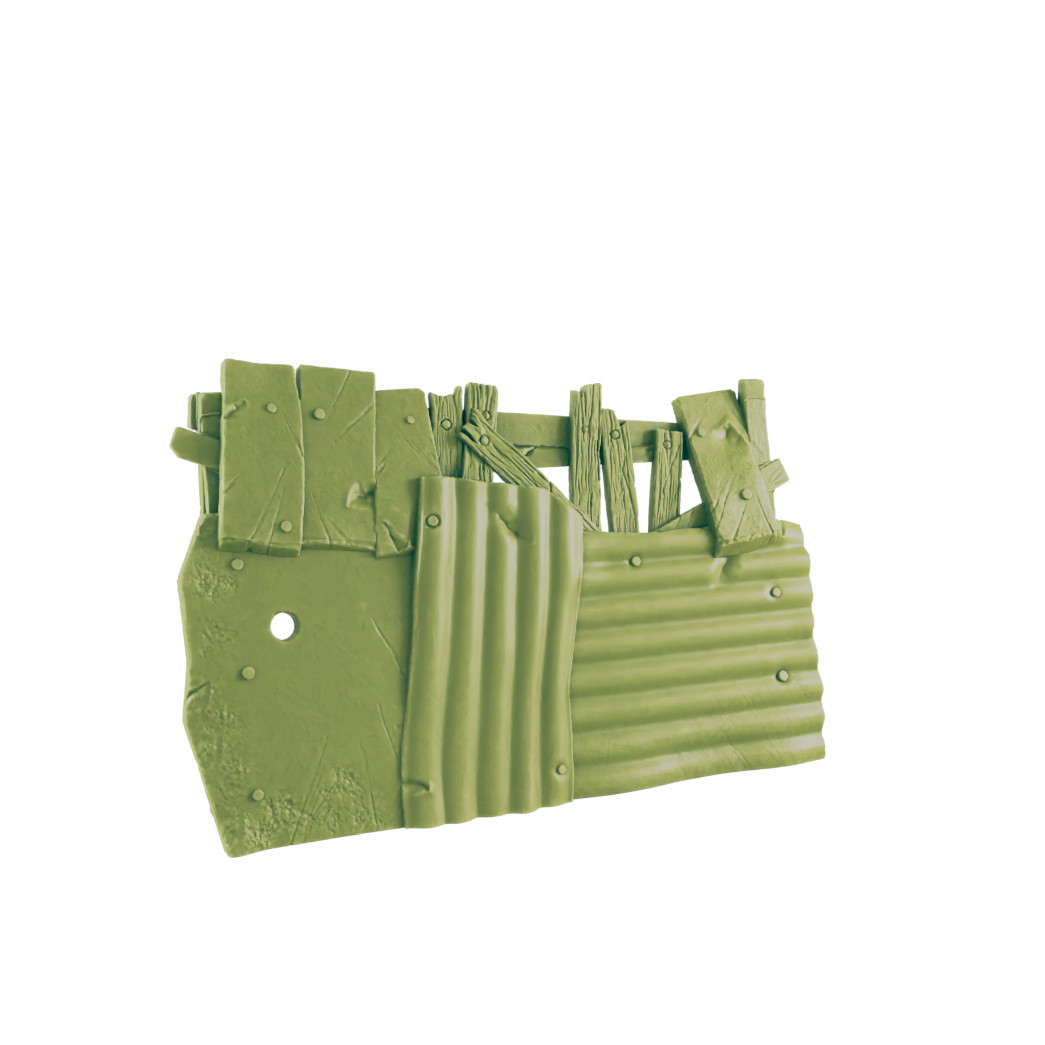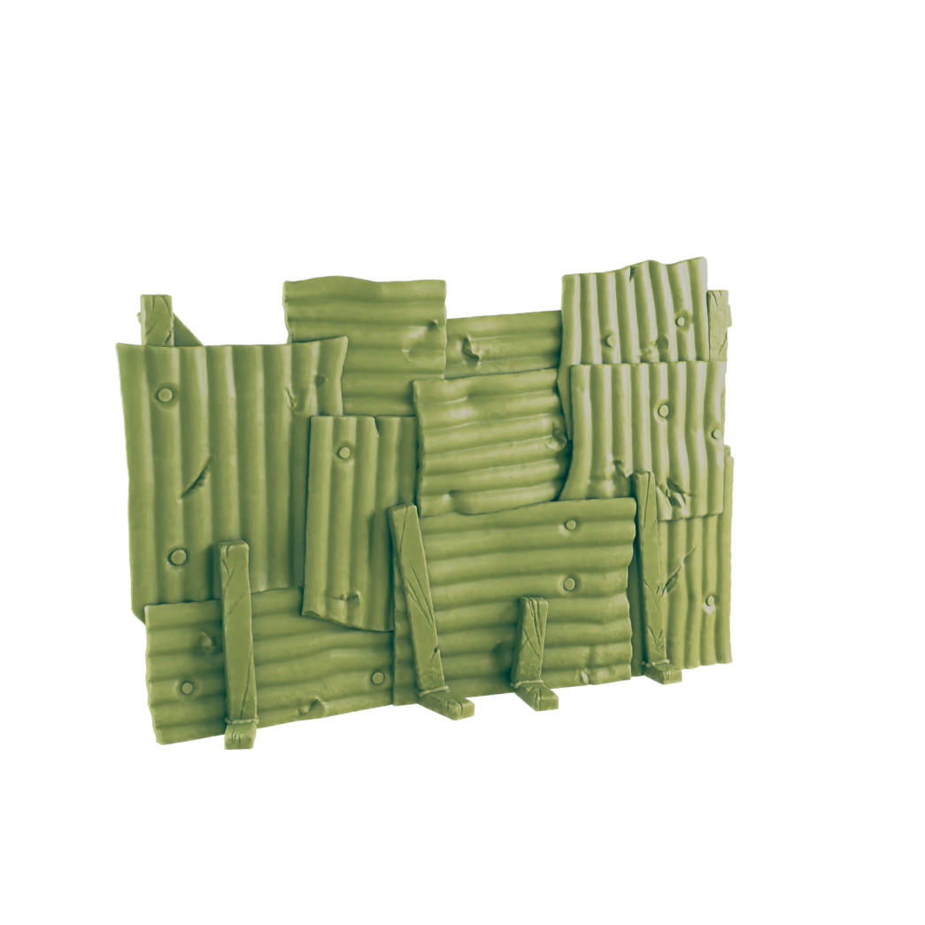 Ein Set aus 6 verschiedenen Wellblechzäunen aus Resin für Tabletopsysteme wie Fallout Wasteland im 28-32mm Format. Es können dabei einfache sowie doppelte Mastenversionen gebaut werden.